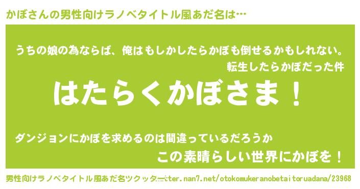 | 女子向けラノベタイトル風あだ名 | 『首の姫と首なしかぼ』『かぼ伯爵の花嫁』 |