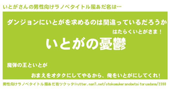 | 胡散臭い通販商品みたいなあだ名 | 『モテモテ間違いなし水晶球…その名も「いとが」』 |