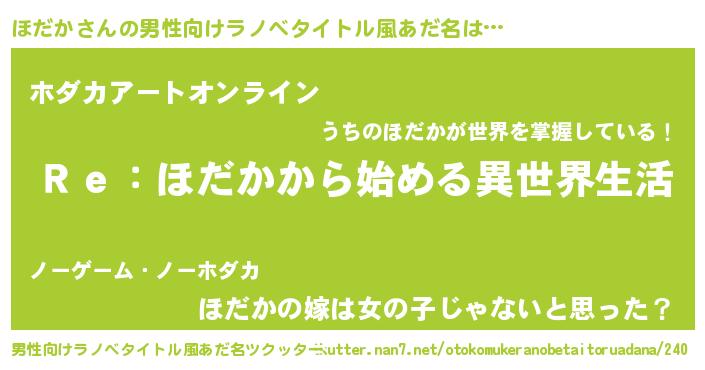 | ヘコむあだ名 | 『ほだもー』『ほだ太郎』『なまこ酢』 |
