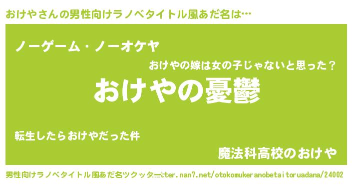 | 胡散臭い通販商品みたいなあだ名 | 『必ず成功する水晶球…その名も「おけや」』 |