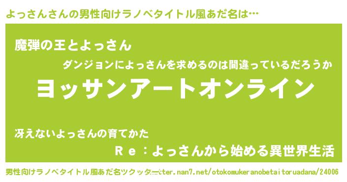 | 胡散臭い通販商品みたいなあだ名 | 『億万長者になれる霊験あらたかなお札…その名も「よっさん」』 |