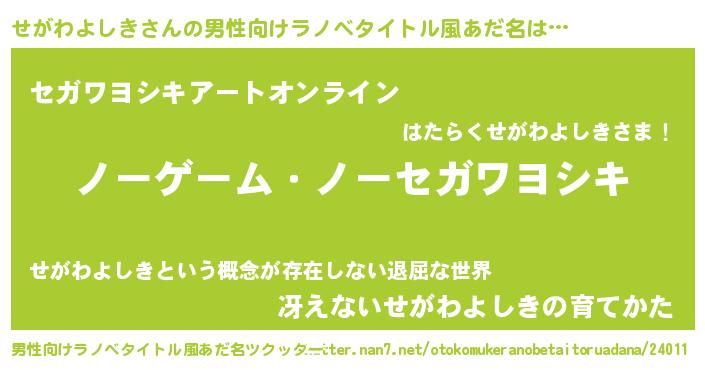 | ヘコむあだ名 | 『せがふぇ~』『せがわよしき(笑)』 |