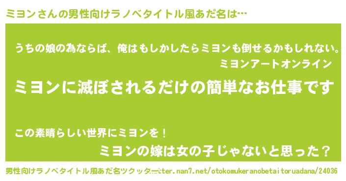 | ヒーロー風カッコイイあだ名 | 『ウルトラミヨンマン』『幻影騎士ミヨ』 |