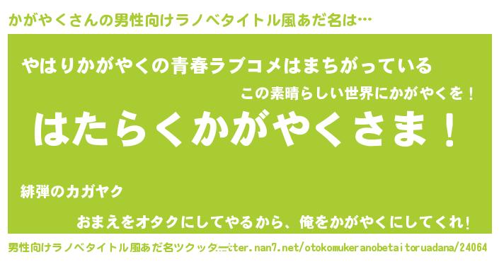 | ヒーロー風カッコイイあだ名 | 『ウルトラかがやくマン』『仮面カガダー』 |