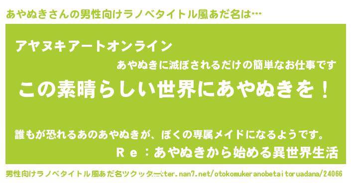 | 胡散臭い通販商品みたいなあだ名 | 『あなたにだけ特別に提供する限定10本のレアな日本酒…その名も「あやぬき」』 |