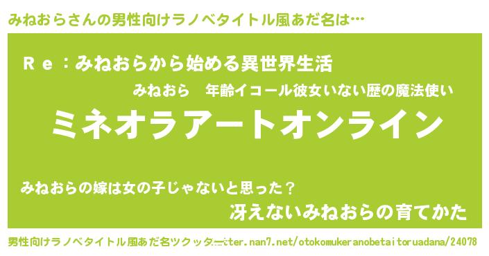 | 女子向けラノベタイトル風あだ名 | 『みねおら姫と円卓の騎士』 |