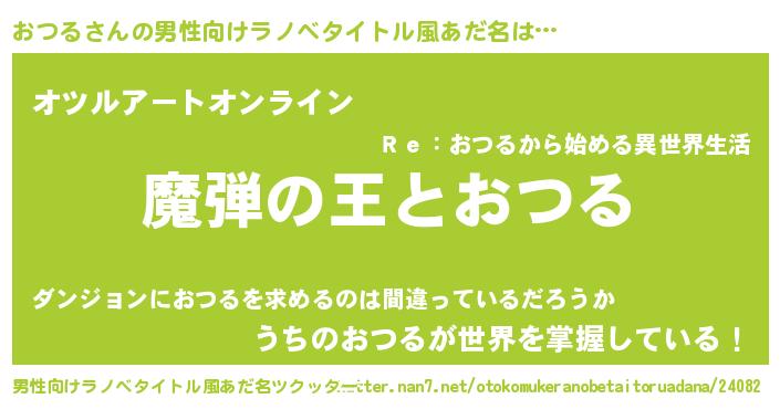 | 女子向けラノベタイトル風あだ名 | 『乙女ゲームの破滅フラグしかない悪役おつるに転生してしまった…』 |