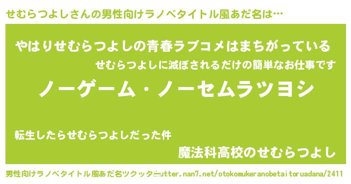 | 女子向けラノベタイトル風あだ名 | 『せむらつよし恋絵巻』 |