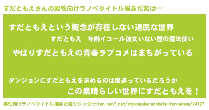 | 女子向けラノベタイトル風あだ名 | 『すだともえの雑貨屋さん』 |