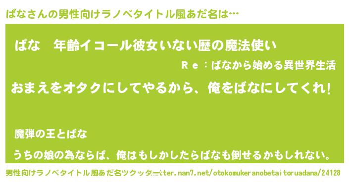 | 女子向けラノベタイトル風あだ名 | 『ばな恋絵巻』『ばなの玉の輿計画!』 |