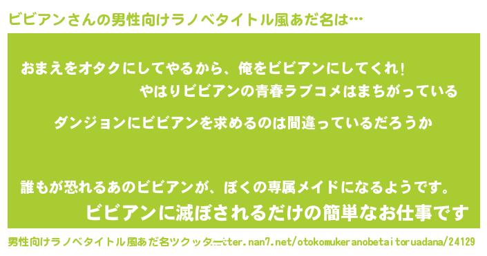 | 女子向けラノベタイトル風あだ名 | 『ビビアンは平凡を望む』 |