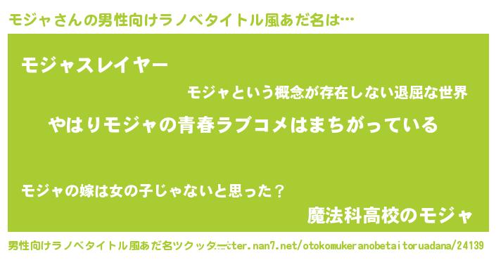 | 女子向けラノベタイトル風あだ名 | 『モジャ伯爵の花嫁』『モジャ様がみてる』 |