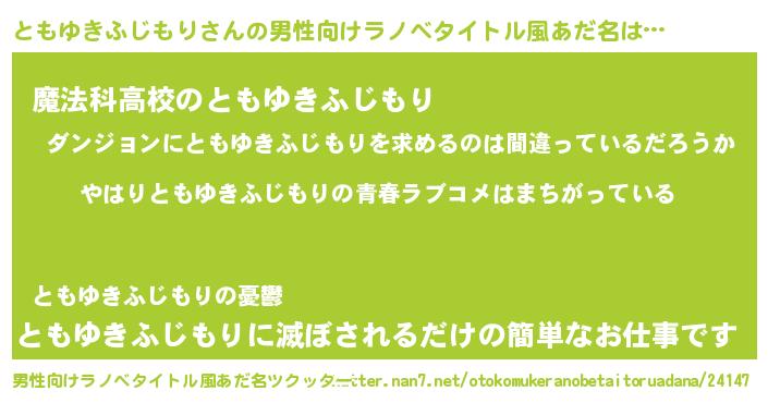 | 女子向けラノベタイトル風あだ名 | 『ともゆきふじもりの雑貨屋さん』 |