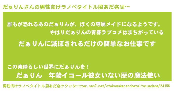 | ヒーロー風カッコイイあだ名 | 『ネオダァリン』『ウルトラだぁりんマン』 |