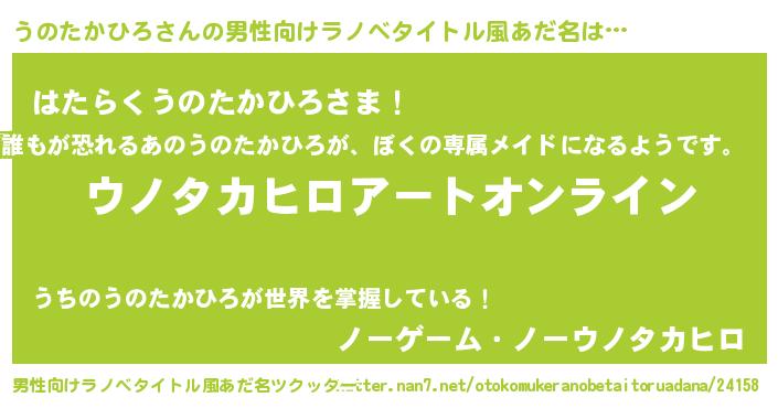 | 意味不明あだ名 | 『ペロリンうのたかひろ』 |