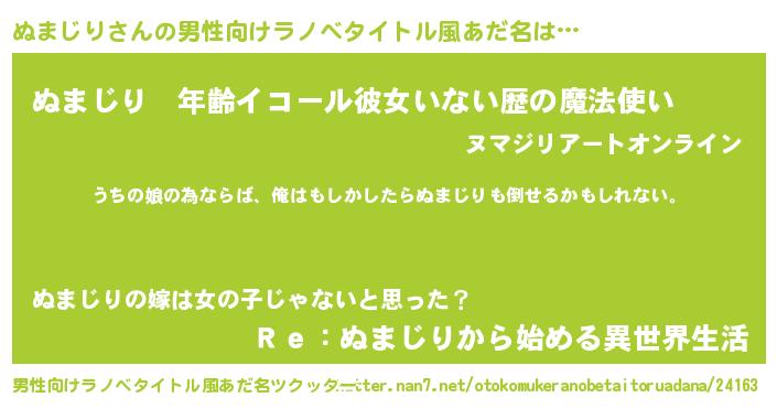 | 意味不明あだ名 | 『ぬまじりフォーエバー』『自称ぬまじり』 |