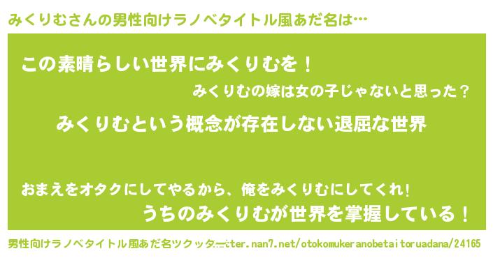 | 意味不明あだ名 | 『永久保存みくりむ』 |