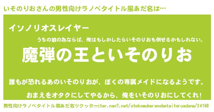 | ヒーロー風カッコイイあだ名 | 『仮面イソダー』『正義の使者いそのりお』 |