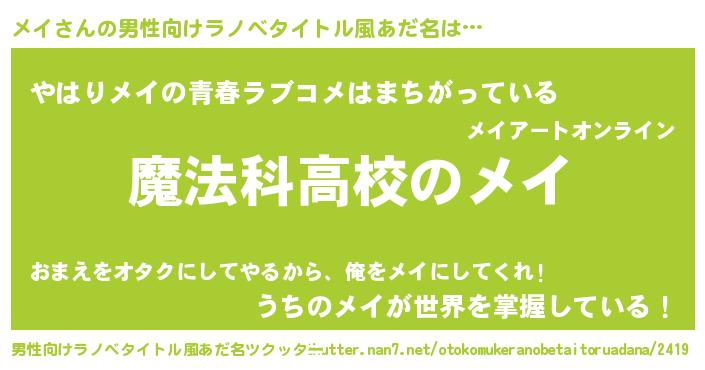 | 女子向けラノベタイトル風あだ名 | 『メイアンティーク』『メイの雑貨屋さん』 |