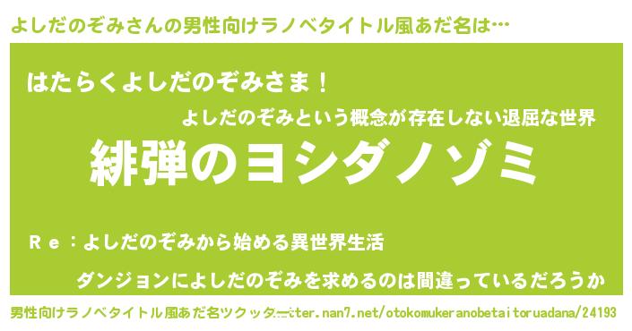 | 胡散臭い通販商品みたいなあだ名 | 『信頼と実績のサプリメント…その名も「よしだのぞみ」』 |