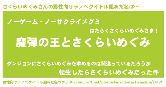 | ヘコむあだ名 | 『さくを』『さくらいめぐみ(笑)』 |