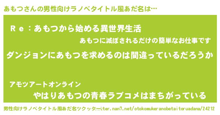 | 女子向けラノベタイトル風あだ名 | 『あもつは平凡を望む』『闇のあもつ』 |