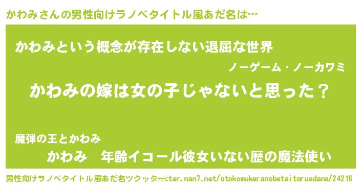 | ヘコむあだ名 | 『かわっ子』『かわみ(笑)』 |