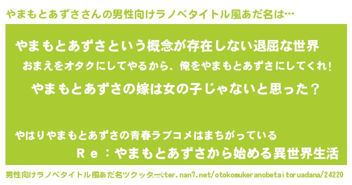 | ヘコむあだ名 | 『やまっぺ』『やまもとあずさ(笑)』 |