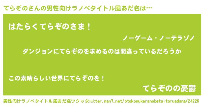 | ヒーロー風カッコイイあだ名 | 『黄金騎士テラ』『スーパーテラゾノ』 |