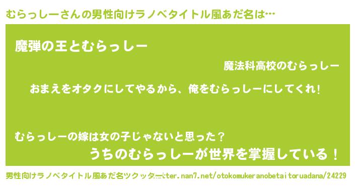 | ヒーロー風カッコイイあだ名 | 『正義の使者むらっしー』『仮面ムラダー』 |