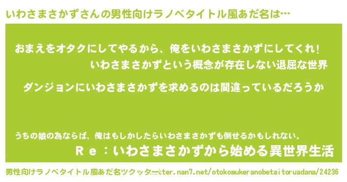 | 女子向けラノベタイトル風あだ名 | 『いわさまさかずは平凡を望む』 |