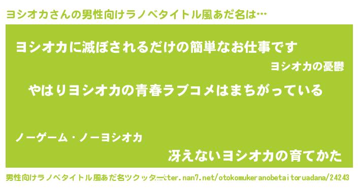 | 女子向けラノベタイトル風あだ名 | 『ヨシオカの雑貨屋さん』 |