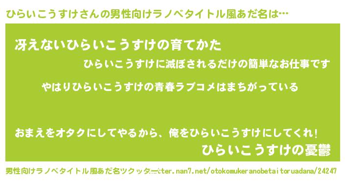| 女子向けラノベタイトル風あだ名 | 『ひらいこうすけの雑貨屋さん』 |