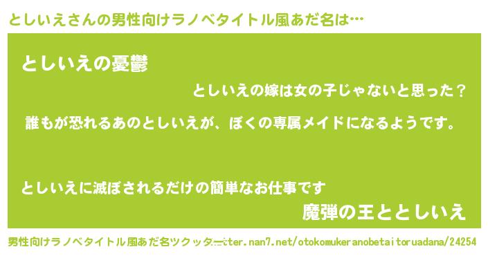 | 意味不明あだ名 | 『永久保存としいえ』『ペロリンとしいえ』 |