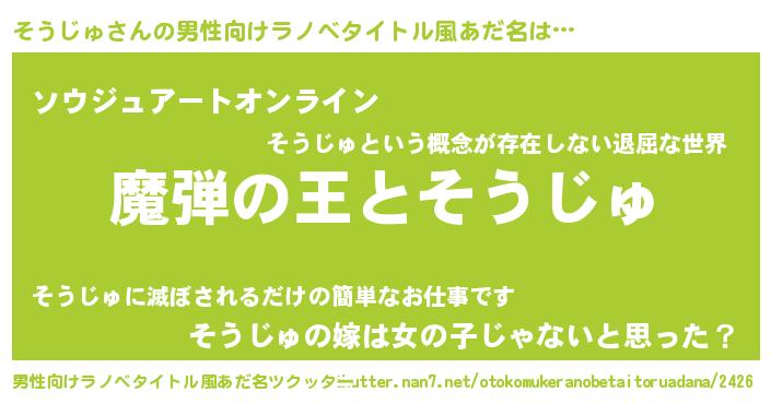 | 女子向けラノベタイトル風あだ名 | 『乙女ゲームの破滅フラグしかない悪役そうじゅに転生してしまった…』 |