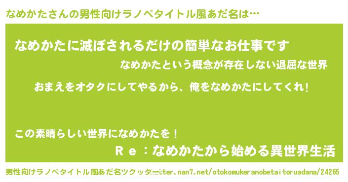 | 女子向けラノベタイトル風あだ名 | 『なめかた夫妻のなれそめ』 |