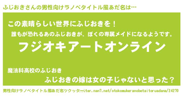 | 胡散臭い通販商品みたいなあだ名 | 『億万長者になれる霊験あらたかなお札…その名も「ふじおき」』 |