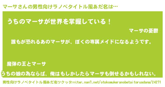 | ヘコむあだ名 | 『マーサ(苦笑)』『酢こんぶ』 |