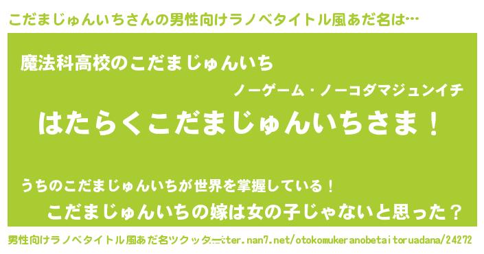 | 胡散臭い通販商品みたいなあだ名 | 『ガンによく効く高麗人参…その名も「こだまじゅんいち」』 |