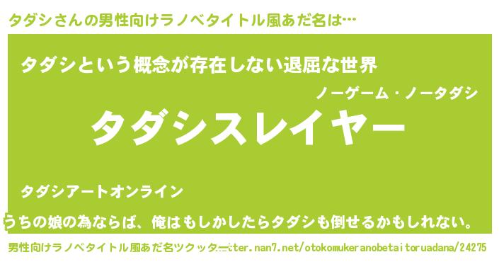 | ヘコむあだ名 | 『タダシ(笑)』『豆乳』『タダにゅー』 |