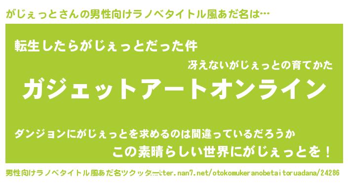 | 女子向けラノベタイトル風あだ名 | 『がじぇっと姫と円卓の騎士』 |