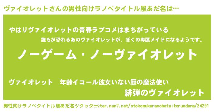 | 女子向けラノベタイトル風あだ名 | 『死神ヴァイオレットの再婚』 |