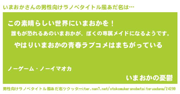 | 女子向けラノベタイトル風あだ名 | 『いまおかの雑貨屋さん』 |