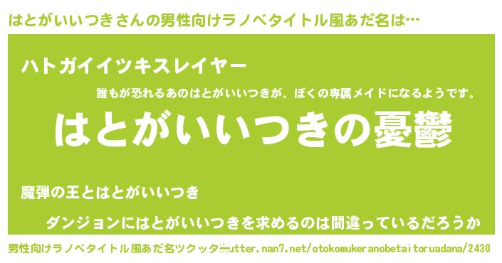 | ヒーロー風カッコイイあだ名 | 『スーパーハトガイイツキ』 |