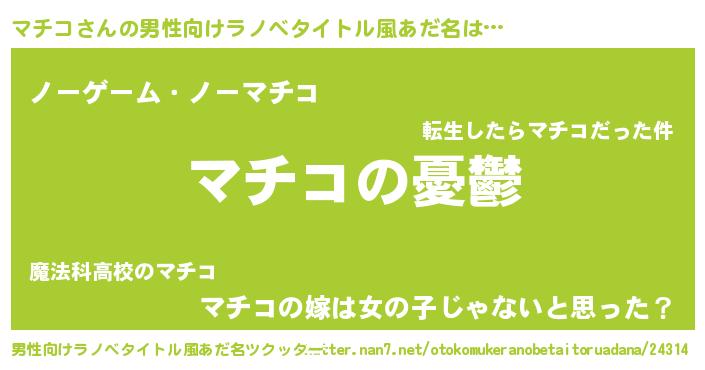 | 胡散臭い通販商品みたいなあだ名 | 『必ず成功するブレスレット…その名も「マチコ」』 |