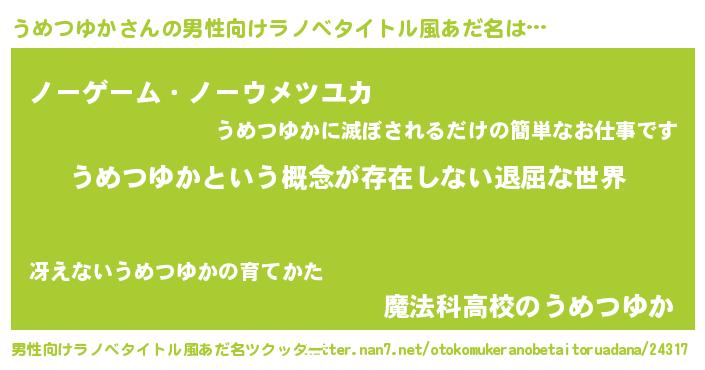 | 意味不明あだ名 | 『永久保存うめつゆか』『自称うめつゆか』 |