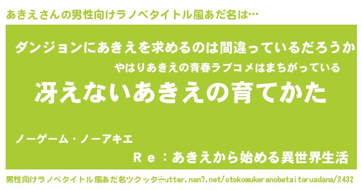| 意味不明あだ名 | 『とにかく怪しいあきえ』『自称あきえ』 |