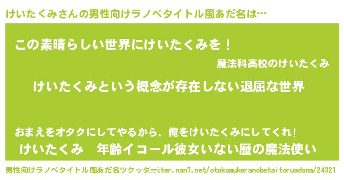 | 胡散臭い通販商品みたいなあだ名 | 『絶対に幸福をもたらす健康食品…その名も「けいたくみ」』 |