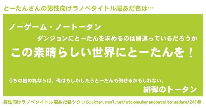 | 意味不明あだ名 | 『住所不定無職とーたん(77歳)』 |