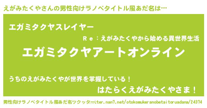 | ヒーロー風カッコイイあだ名 | 『スーパーエガミタクヤ』『暗黒騎士エガ』 |